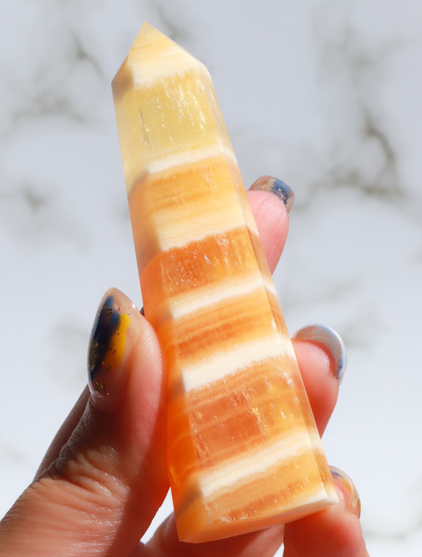 オレンジカルサイトは、体内に停滞した不要なエネルギーを放出する守護石であり、新鮮なエネルギーを取り込み、古いエネルギーは逃がします✨✨