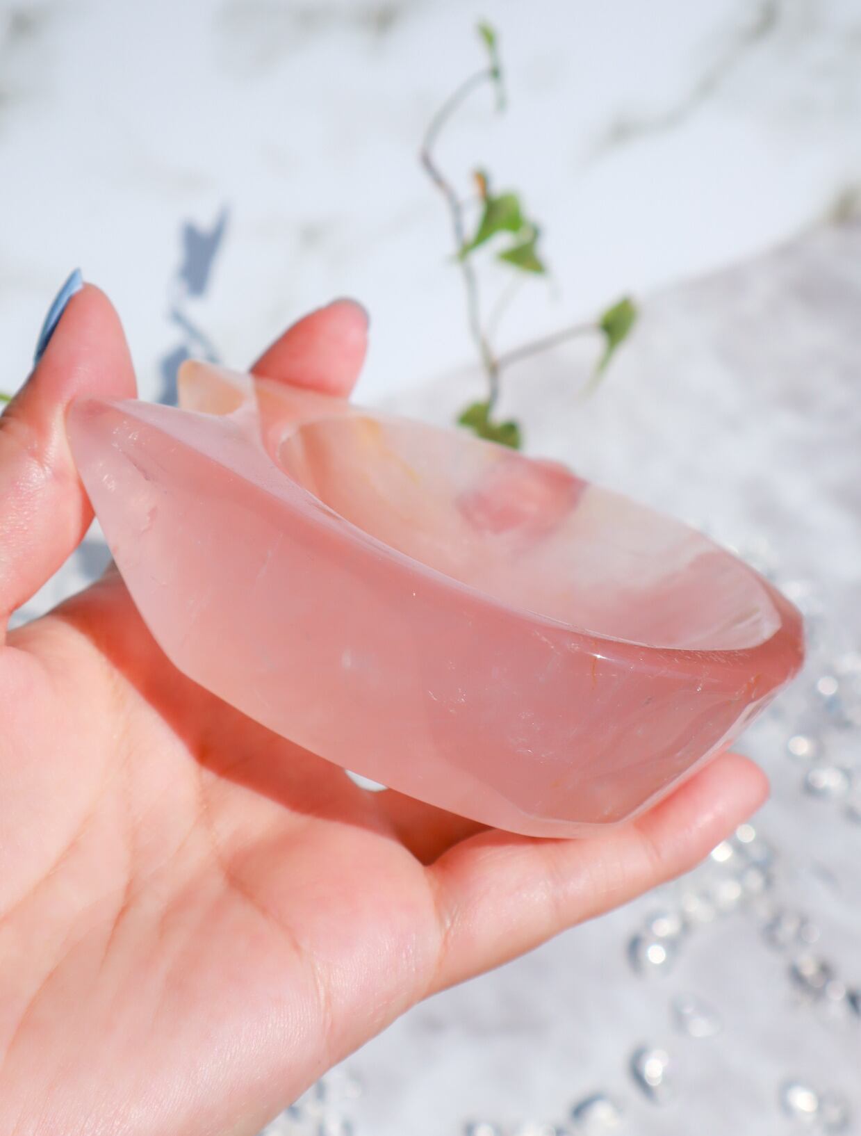 とっても透明感のあるローズクォーツにゴールデンヒーラーがキラキラと輝く素敵な器♡