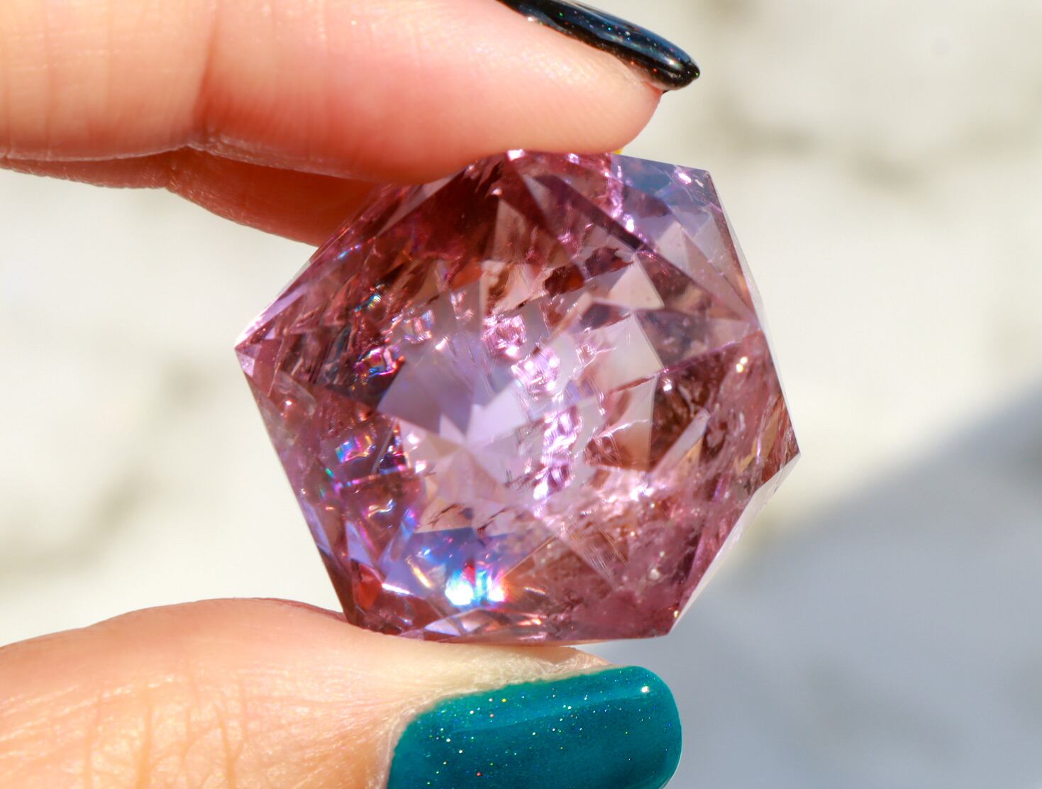 宝石みたいに細かくカットが入っているので、まるでミラーボールのようにどの角度から見ても光の屈折が美しく、虹もキラキラです°˖✧◝(⁰▿⁰)◜✧˖°