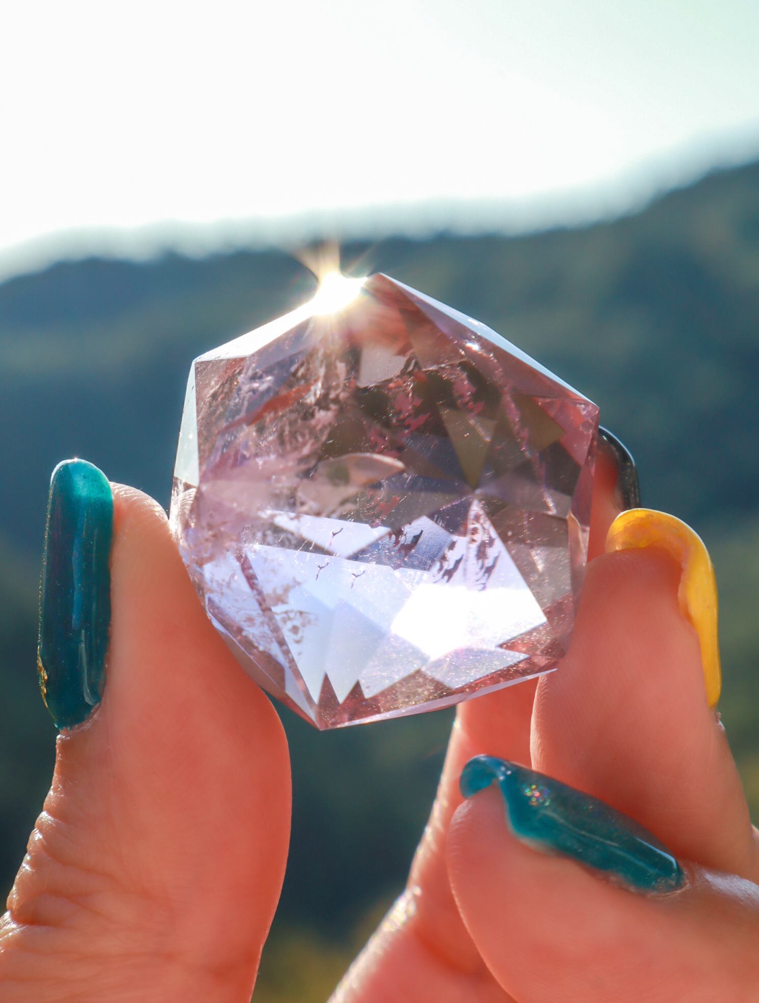 宝石みたいに細かくカットが入っているので、まるでミラーボールのようにどの角度から見ても光の屈折が美しく、虹もキラキラです°˖✧◝(⁰▿⁰)◜✧˖°