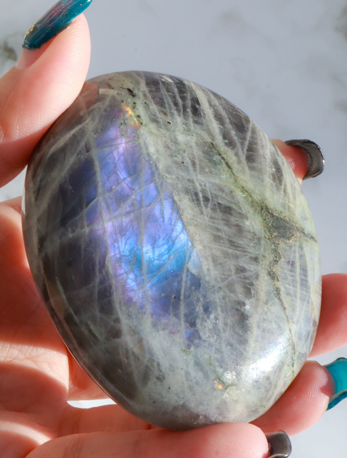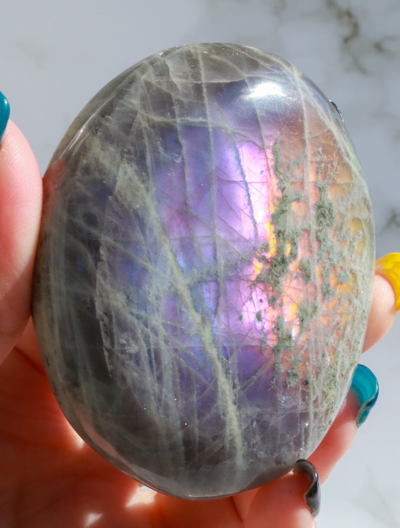 光の当たり方や角度によって色が違ったり、色の現れ方が違ったりするなど、なんとも魅力的な石です✨✨また、霊感や第六感、テレパシー能力などを高めるパワーストーンとしての効果があるとされ、瞑想にも最適な石と言えます。