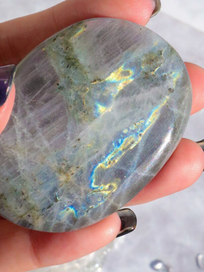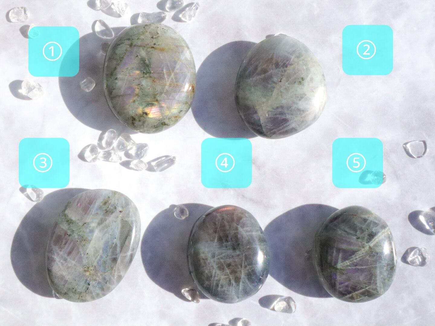 ラブラドライトは元々写真がとっても難しいです。光の当たり方によって出る色も、出方も見え方も変わってくるので、写真で一部を切り取るのは非常に難しいです。