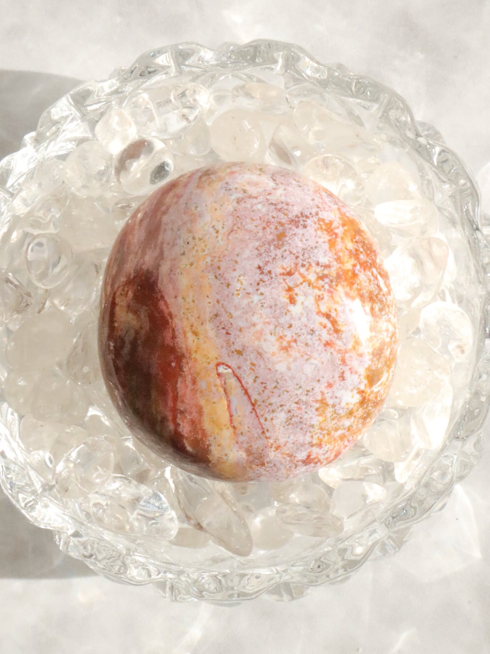 オーシャンジャスパーは海岸で採掘されたことからオーシャンの意味をその名に付けられたとされています✨まだら模様にも見える柄は1つの絵画のようにも見受けられます✨このこはオーシャンジャスパーで特に人気のピンク系ストーンです♡ピンクとレッドとイエローでスイーツみたいなこです♡♡♡