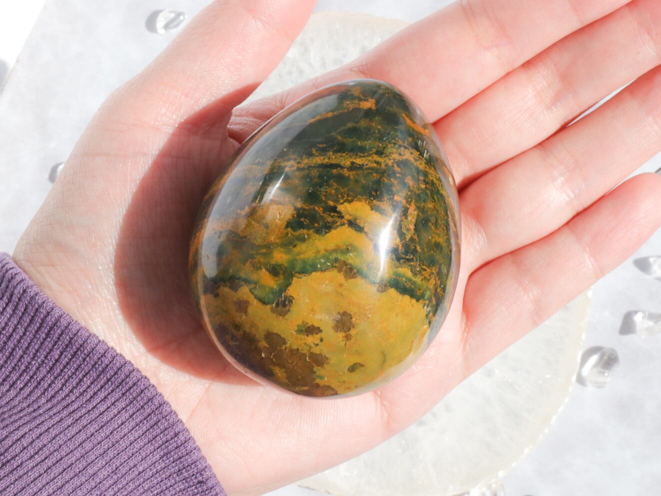オーシャンジャスパーは海岸で採掘されたことからオーシャンの意味をその名に付けられたとされています✨まだら模様にも見える柄は1つの絵画のようにも見受けられます✨今回はそんなオーシャンジャスパーのたまごさんたちです♡それぞれ個性のあるこをチョイスしました✨ご縁ある方と繋がったら嬉しいです♡♡♡