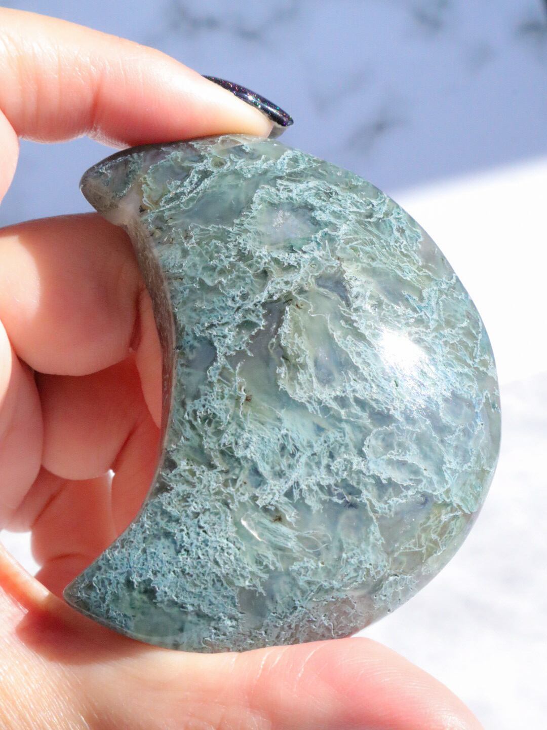 モスアゲートの癒しは、森林浴に似ています。大自然の気を浴びて、心地よさの中で自分自身の波動をチューニングする(調節する・元の健全な状態に戻す)という意味においては、同じような効果があるからかもしれません。単に「リラックスさせてくれる」というだけでなく、魂までも癒してくれると伝えられています♡