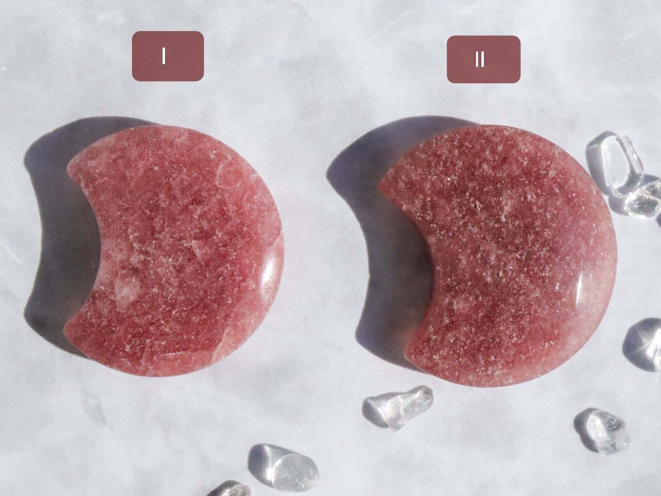 今回はそんなストロベリークォーツの三日月さんです♡色も濃い目でキラキラで、手にしっくりと馴染んで、お供石としてもご活用頂けます✨持ち歩くことで恋愛運も上がるかも♡♡♡