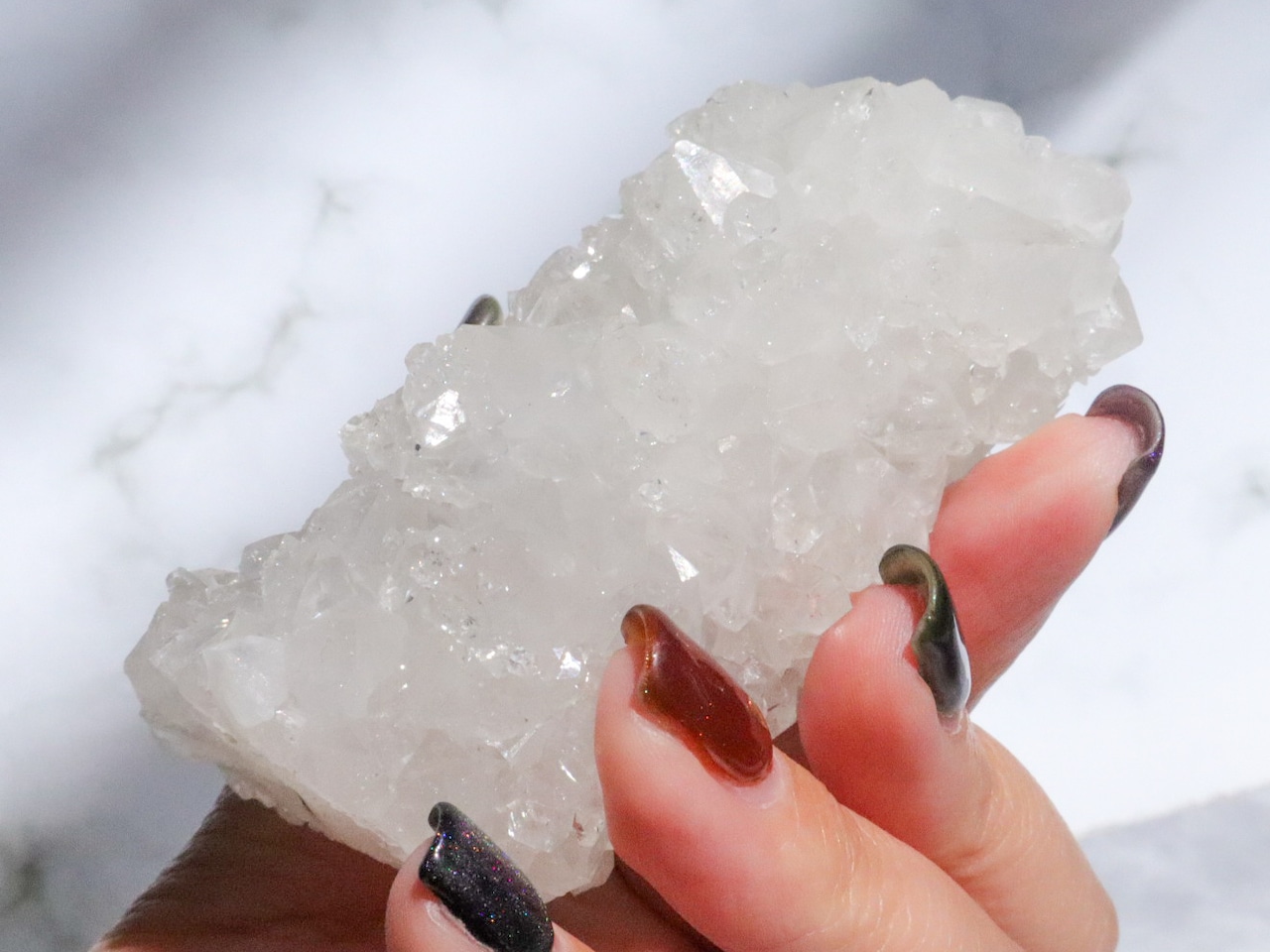 アポフィライトには、強力な浄化作用があり、ストレスを軽減し、精神的な閉塞感や否定的な思考パターンを解放してくれます。過去からの思い込みや習慣で思考や行動の基礎習慣など、自分を縛っているネガティブな固定観念を解放します♡