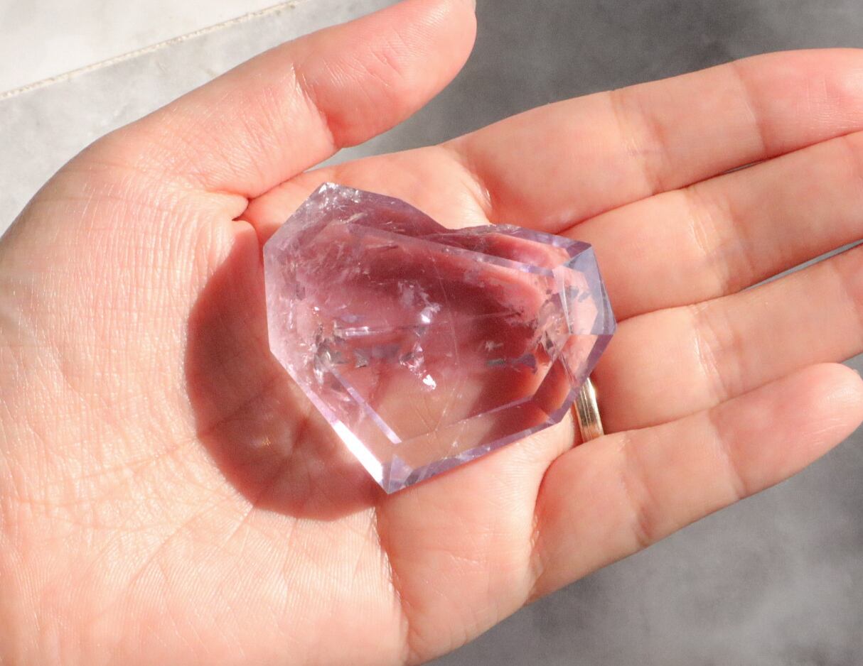 光の下でくるくるするとキラッキラのアメジストハートちゃん♡色は薄い方で透明度もあり、美しい虹も見ることが出来ます✨ファセットカットは光が屈折して見る角度により楽しませてくれます✨✨いつまででも、眺めて居られる美しさです✨是非お手元でご覧頂きたいです♡多少の石目はありますが、それもこのこの個性と受け止めてくださる方にお迎え頂けたら幸いです♡気になる方は動画も合わせてご確認ください。