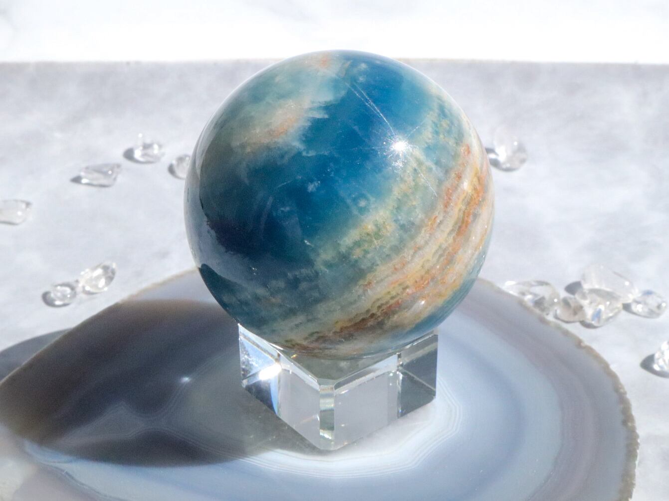 このこは、パッキリした爽やかなブルーが目を引きます✨✨なんだか、地球を見ているような、惑星を見ているような気分で、見ているだけで癒され、どんどんその美しさに魅了されます♡