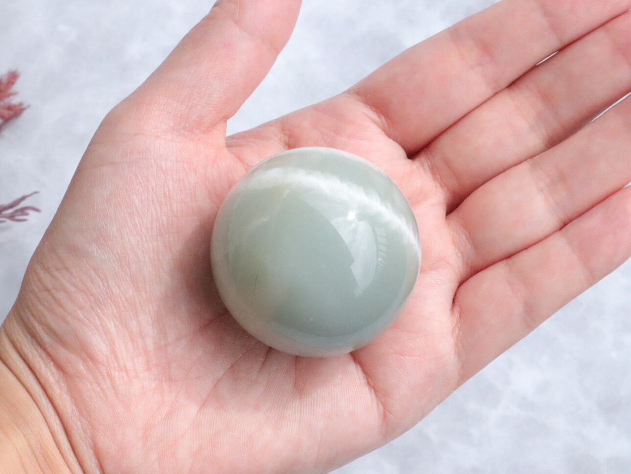 今回、とても高品質で、色も翡翠のような高級感のある落ち着いたグリーンにムーンストーンらしい、白くほわっとしたシラーが輝きます✨