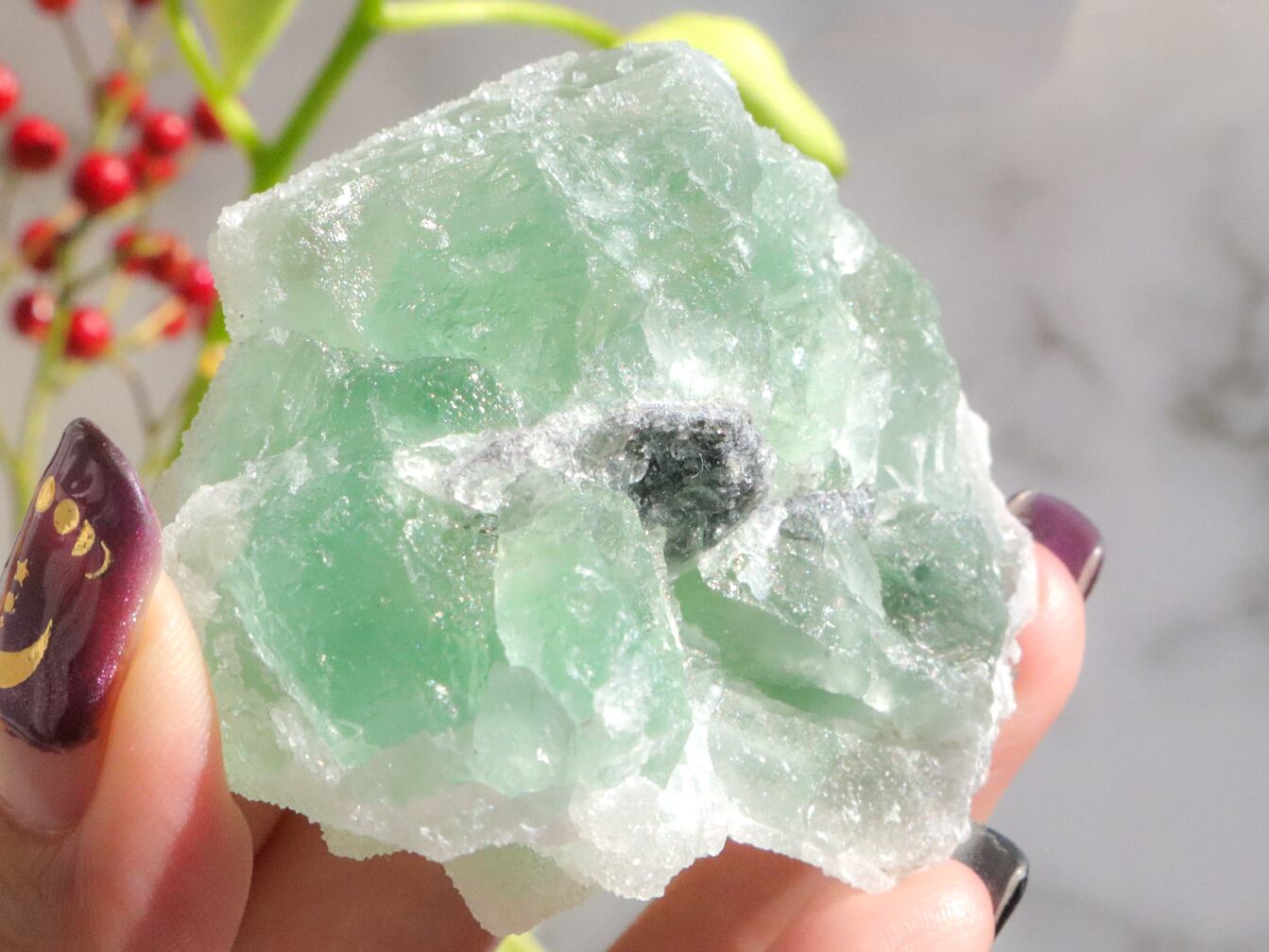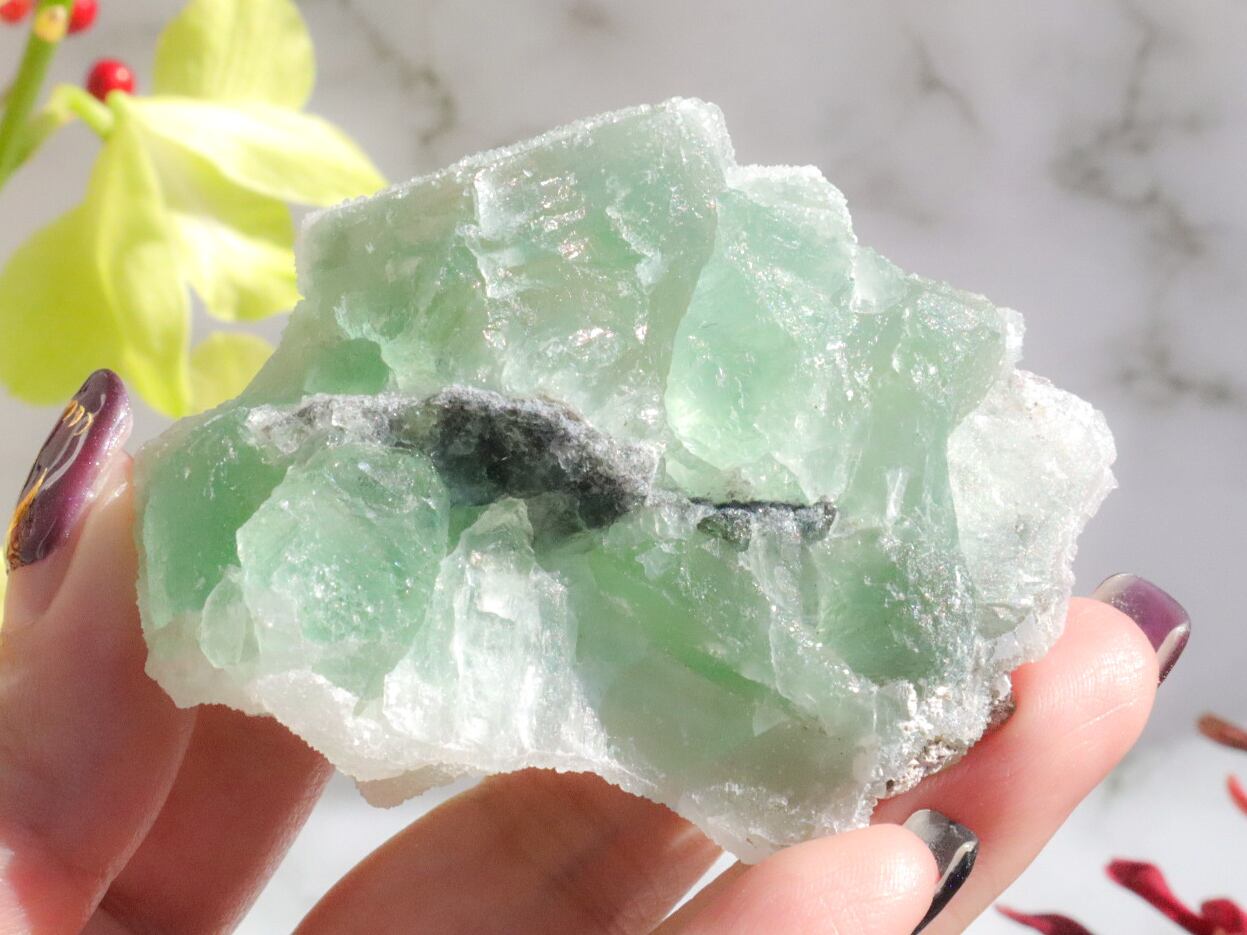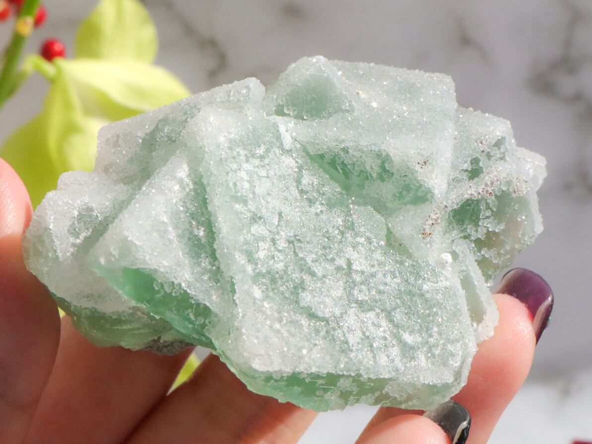 キューブが折り重なったようなグリーンフローライトに、お砂糖をまぶしたような見た目の、シュガーフローライトのご紹介です♡表面はキラッキラです✨✨まるでお砂糖をまぶしたお菓子のようでとってもキュートです✨✨