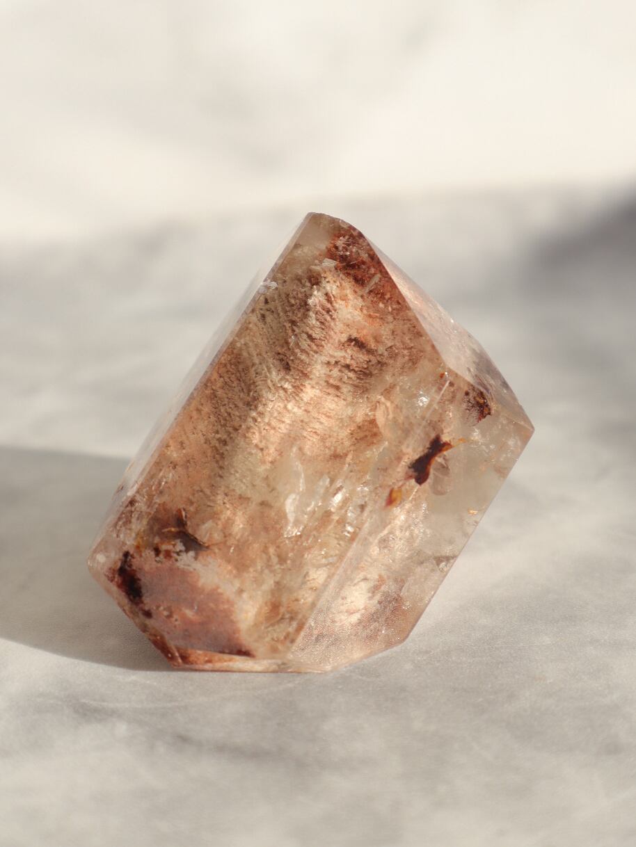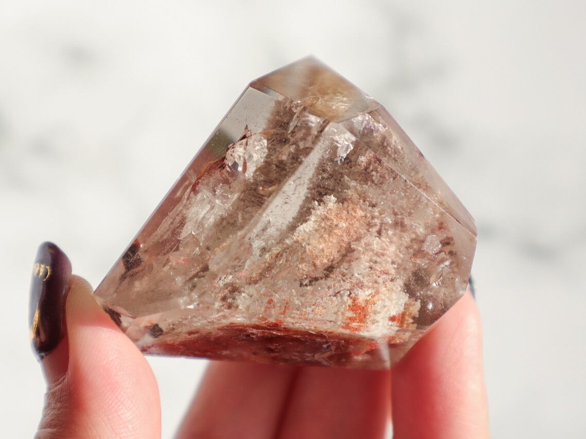 内包物は、クローライト(緑泥石)が多いですが、ほかにも、リモナイトやヘマタイト、ルチルクォーツ、雲母などの鉱物を内包するものもあります✨