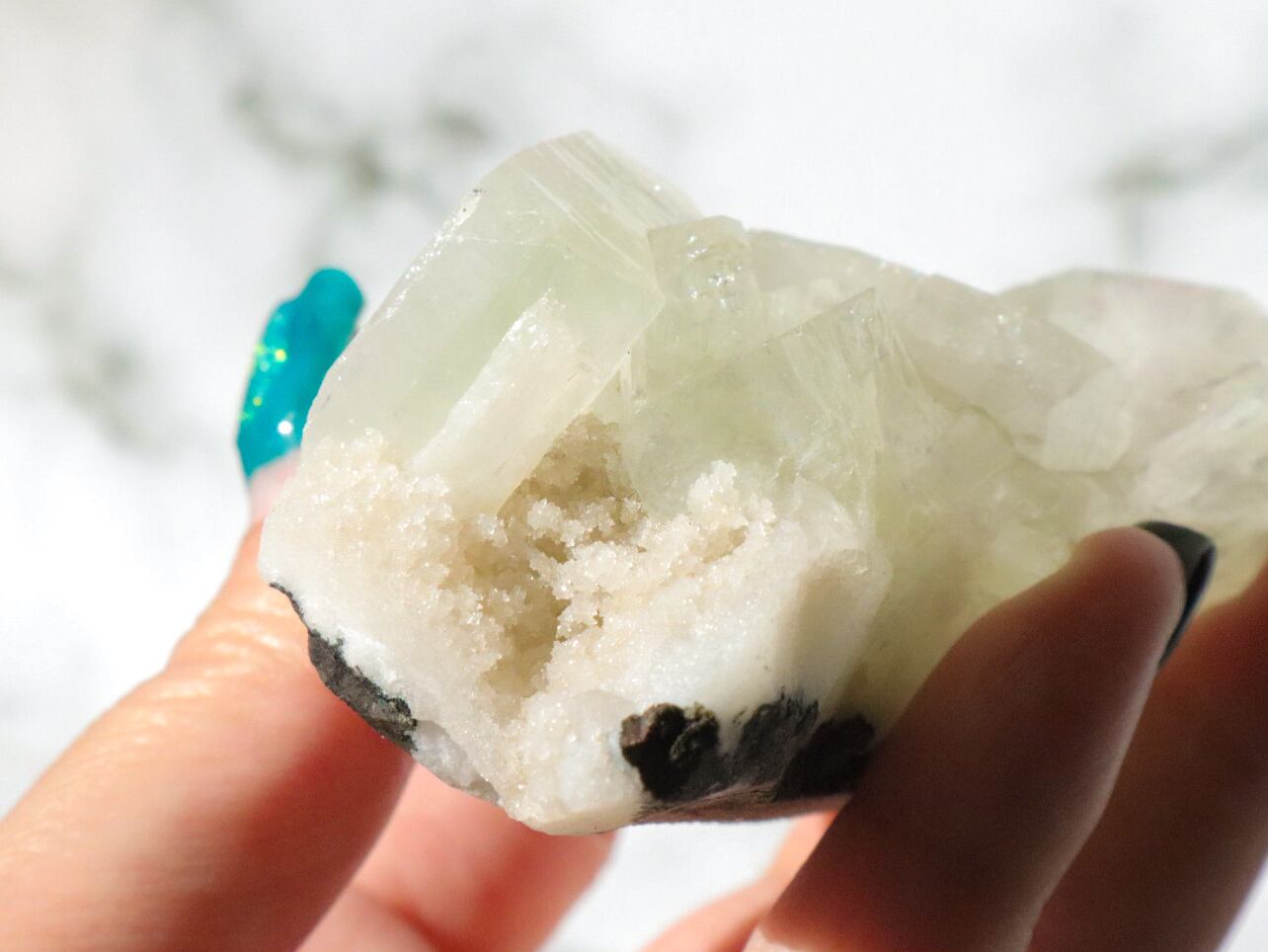 アポフィライトには、強力な浄化作用があり、ストレスを軽減し、精神的な閉塞感や否定的な思考パターンを解放してくれます。過去からの思い込みや習慣で思考や行動の基礎習慣など、自分を縛っているネガティブな固定観念を解放します♡