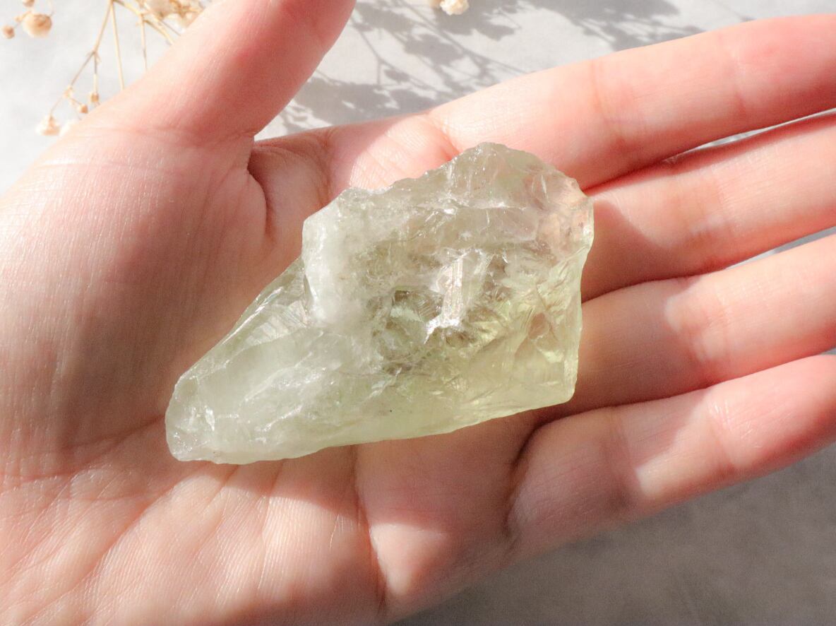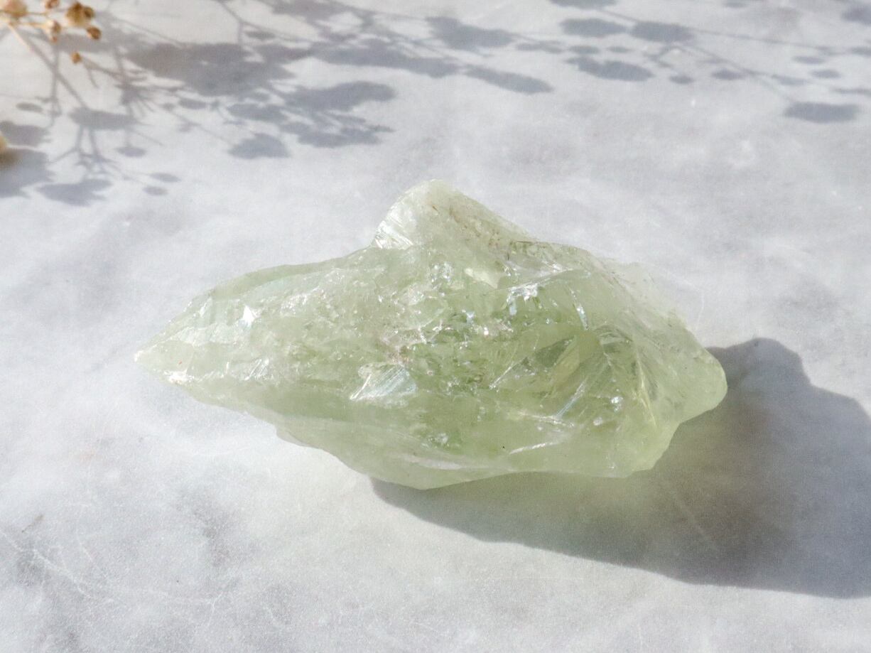 プラシオライトは、和名を「緑水晶」といい、鑑別名も「グリーンクォーツ」ですが、アメジストに分類されるため「グリーンアメジスト」とも呼ばれます。