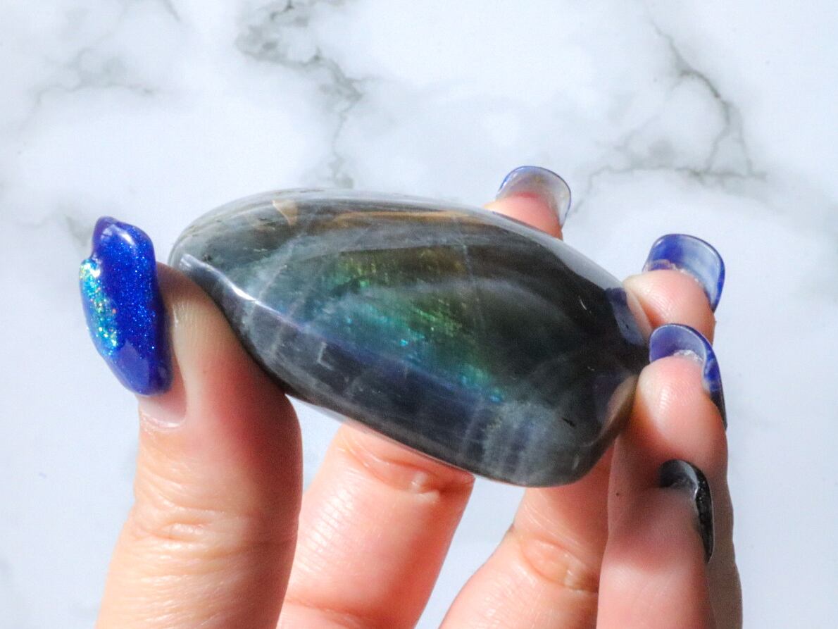 ラブラドライトは、独特の存在感を醸し出す神秘的な魅力の天然石で、宇宙とつながり、インスピレーションを受け取る石とも言われます♡