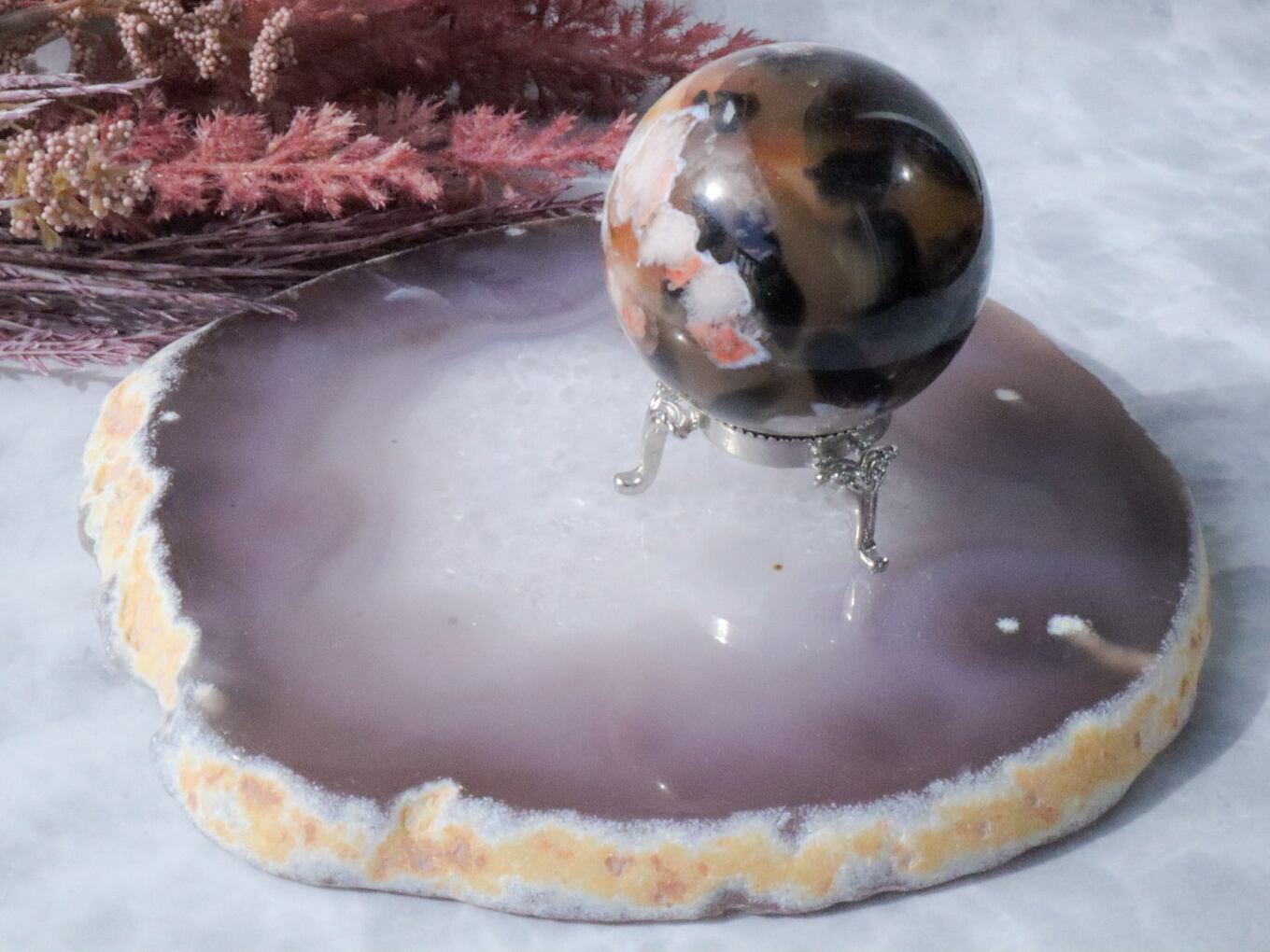 瑪瑙(メノウ)、アゲートは、実にさまざまな色や模様を持つ石です♡これは世界各地に産地があり、それぞれに模様などの傾向があることや、多孔性を活かした染色も関係します✨染めのない瑪瑙は光りによってはグレーが薄いブルーにも見えます✨このこは染めなしのこです♡