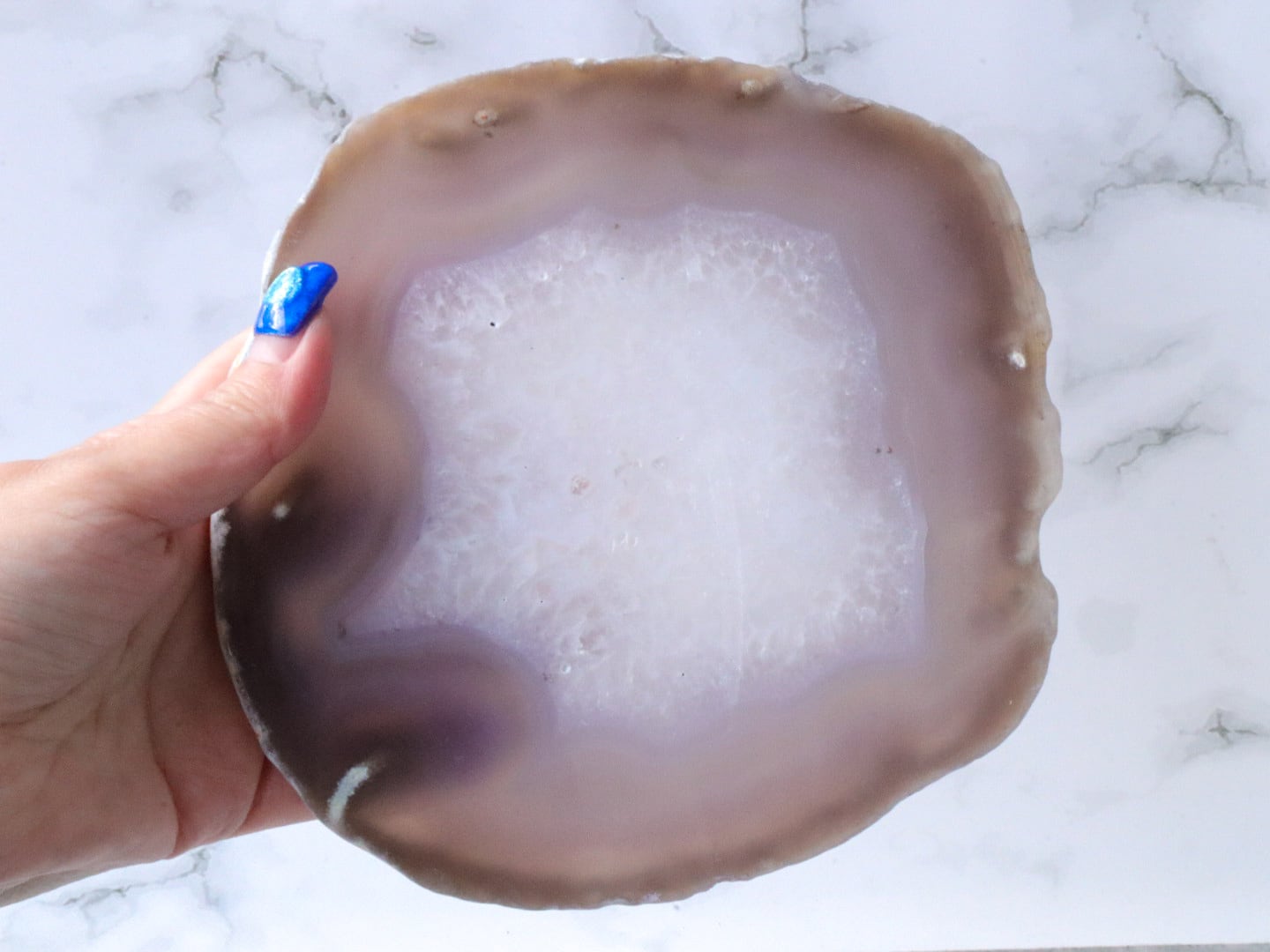 真ん中が白くてザクザクの瑪瑙プレートのご紹介です✨パープルともブラウンともつかない落ち着いたお色は、上に乗せるものの邪魔をしないシンプルかつおしゃれなプレートだと思います♡♡♡プレートの縁もなんだか切り株のようで可愛いです♡重さと大きさのわりにはお安いと思います✨✨