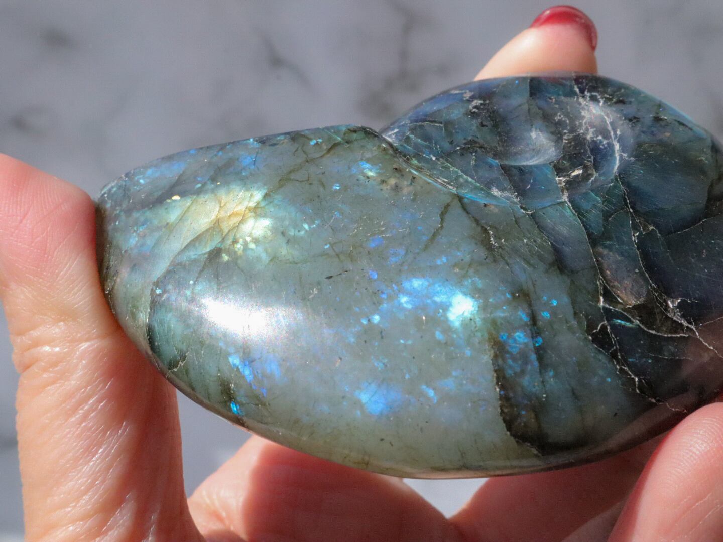 光の当たり方や角度によって色が違ったり、色の現れ方が違ったりするなど、なんとも魅力的な石です✨✨また、霊感や第六感、テレパシー能力などを高めるパワーストーンとしての効果があるとされ、瞑想にも最適な石と言えます✨