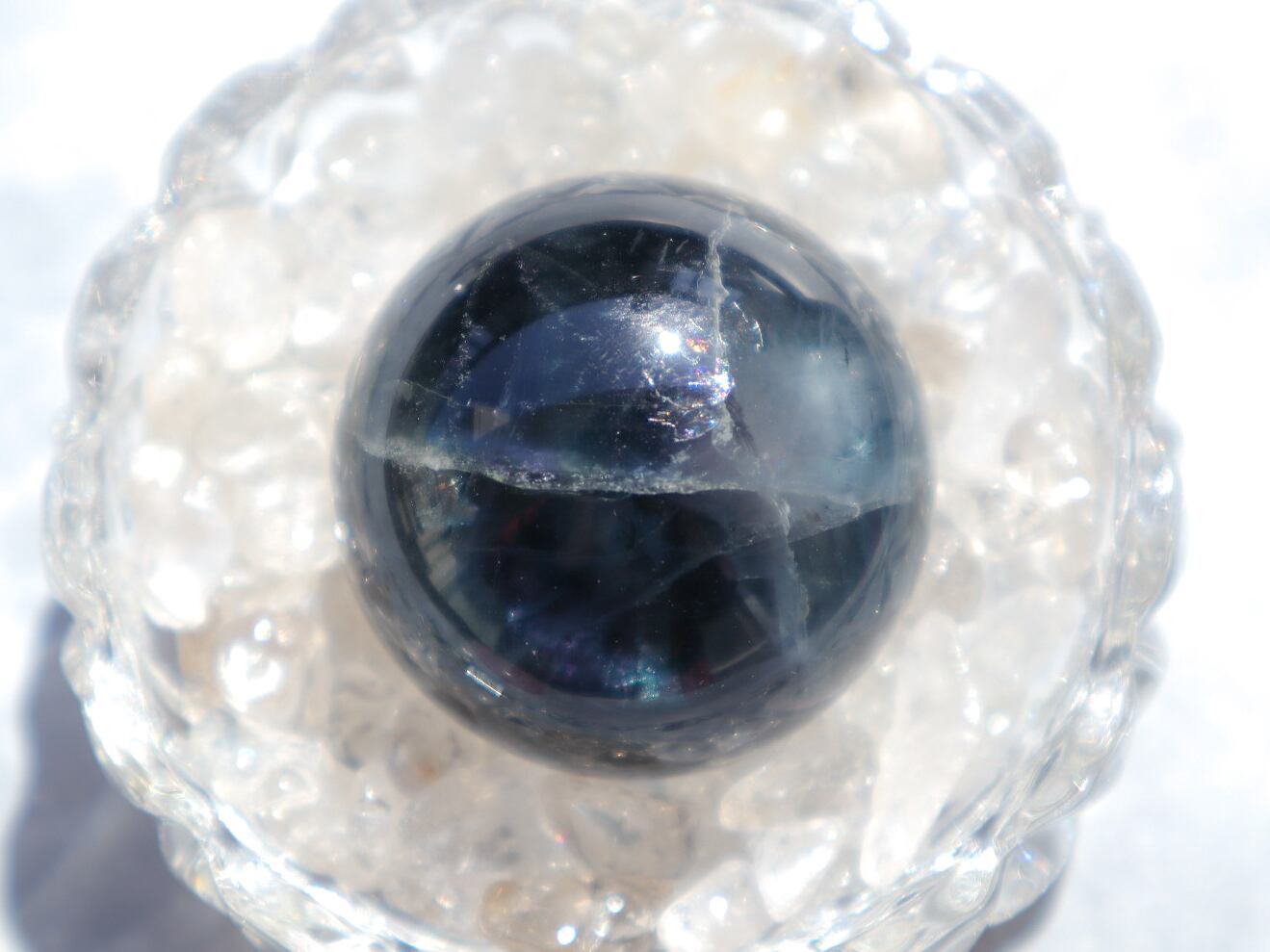 このこは、一見漆黒に見えますが、表面には虹もあり、透明度の高い場所を覗き込むとギランギランでアイリスフローライトと言っても過言ではありません。まるで深海、または、宇宙を切り取ったように漆黒の中に透明度があり、その中には光のグラデーションを見ることが出来ます✨✨