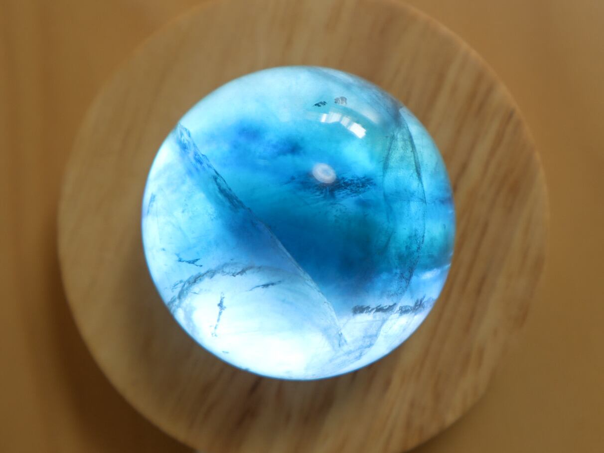 ライトの上に置いてみると見事なブルーが現れ、また、違った顔を見せてくれます✨✨✨