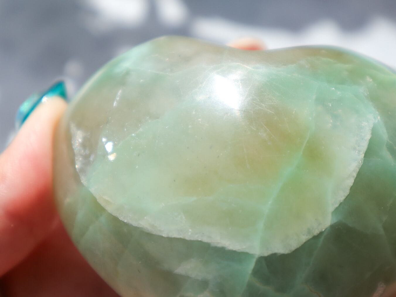 このこは、ガーニエライトらしい綺麗なグリーンのハートさんです♡♡♡ハートさんをくるくるすると、全体的に虹シラーがキラキラします✨✨