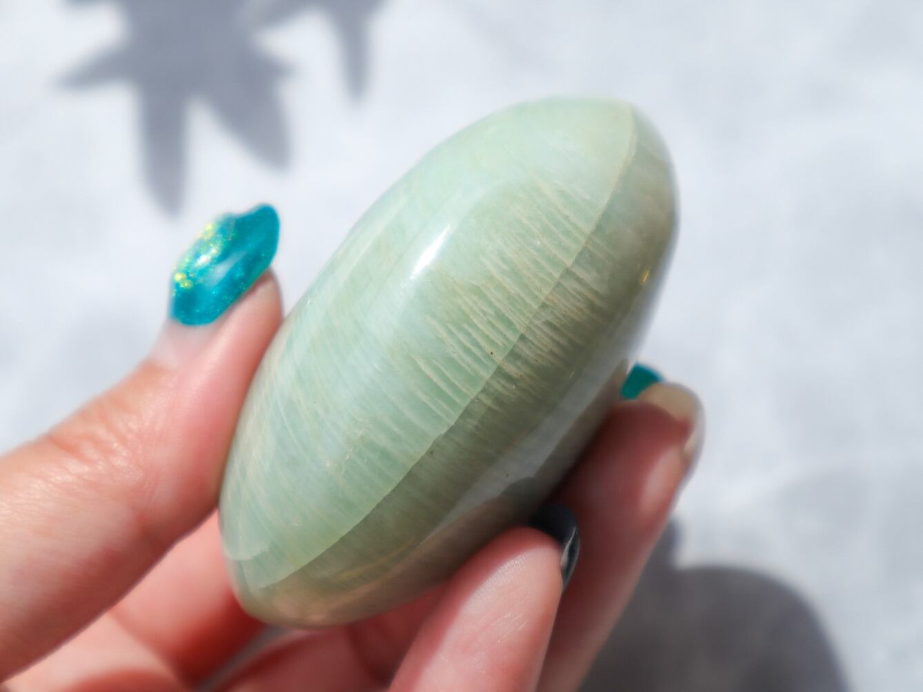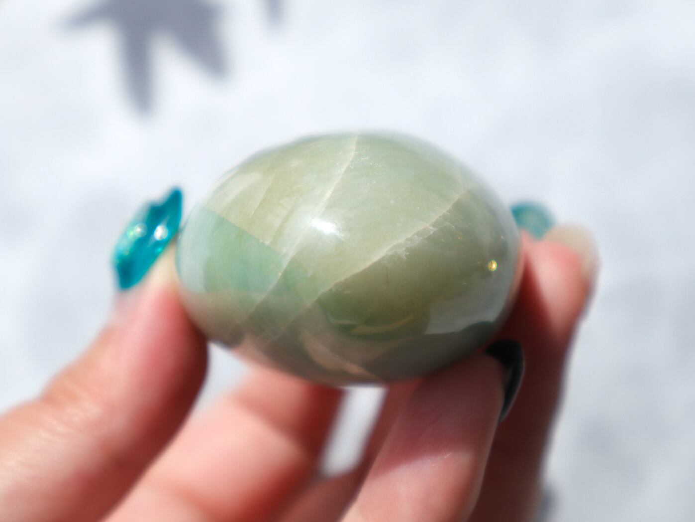 色合いは、パステルイエロー、パステルグリーン、ミントグリーン、淡く美しい印象の石です。ニッケルの含有量が多くなると濃い緑色になります✨