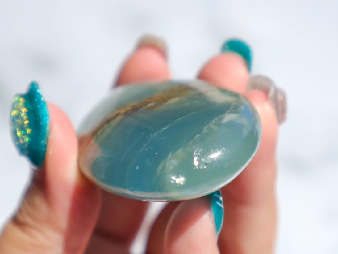 ブルーオニキスは魔除け・浄化の力を持った石なので、薄くてちいさめのこのこは、お守りとして持ち歩くのにピッタリ✨握ったり、観察して、癒され、どんどんその美しさに魅了されます♡是非あなたの手のひらの中でも感じて頂きたいです♪
