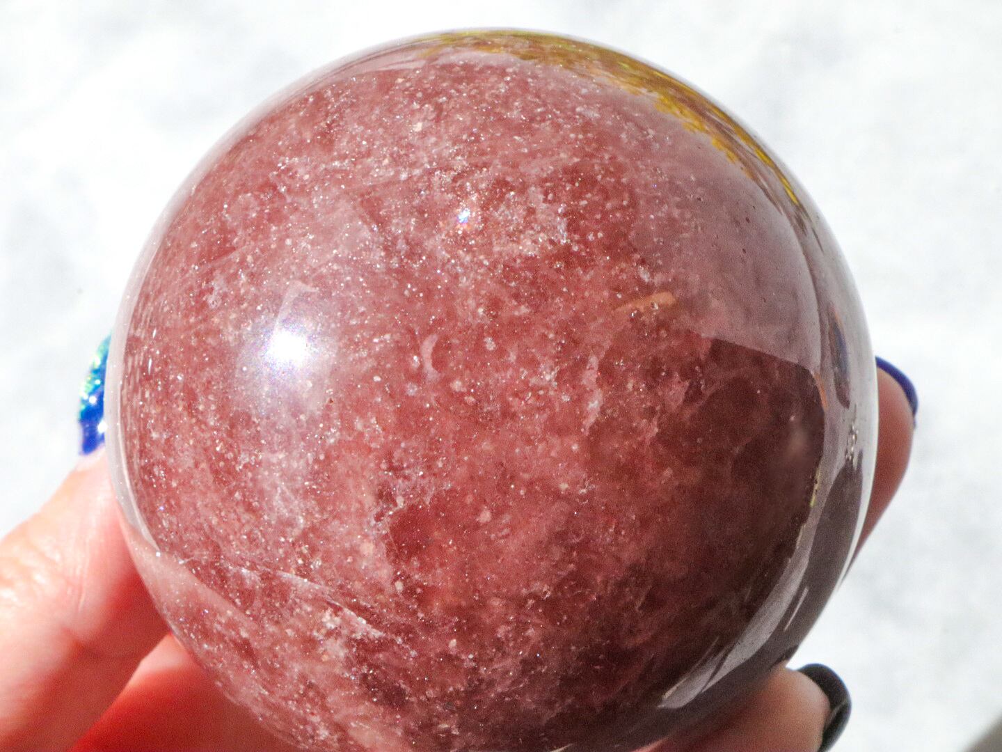 そんなストロベリークォーツの大きなスフィアをご紹介します♪色がとっても濃くて、本当にイチゴジャムのようです♡どこを見てもキラキラで全体的にパーフェクトに美しいこだと思います✨✨ずっしりと重みがあってキラキラして存在感をしめしてくれるかわいいこです✨