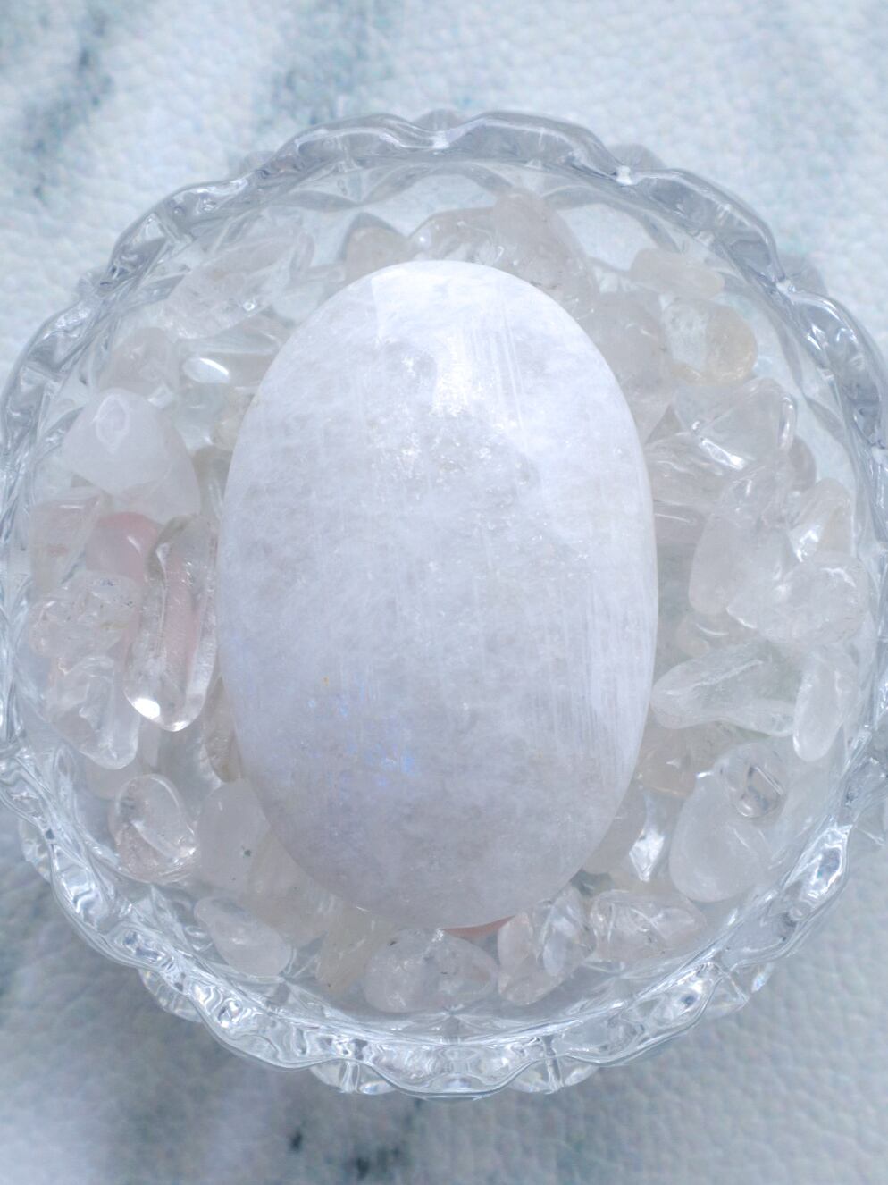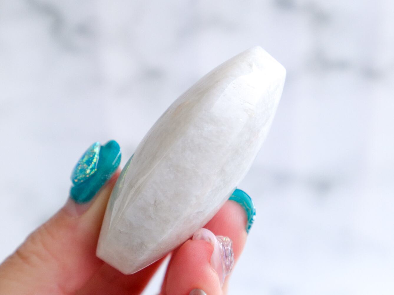 月のエネルギーを受容するムーンストーンは、思考を柔軟にし、感受性や直感力などの感性を高める効果があるとされています。同時に「聞く」能力を高め、不要な衝突も防いでくれます。