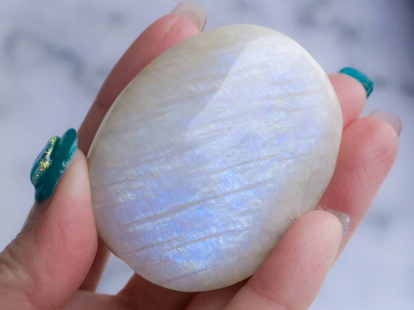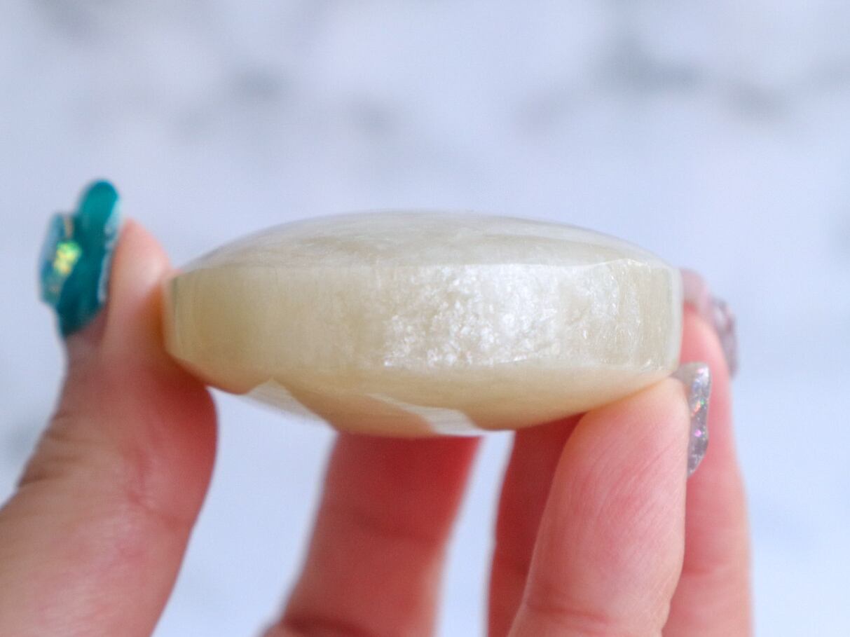 月のエネルギーを受容するムーンストーンは、思考を柔軟にし、感受性や直感力などの感性を高める効果があるとされています。同時に「聞く」能力を高め、不要な衝突も防いでくれます。